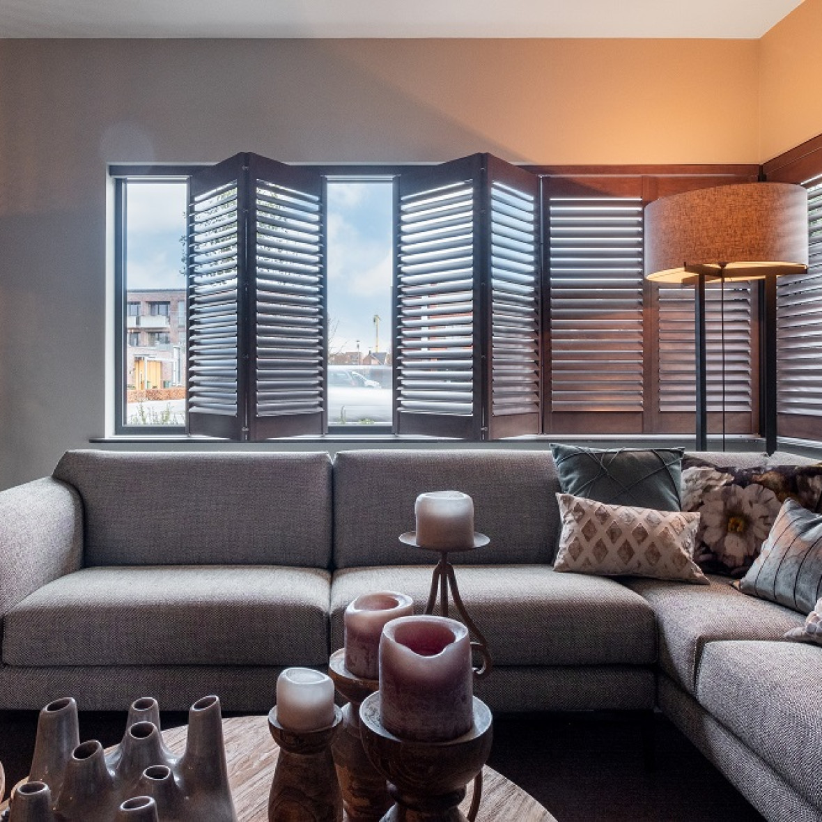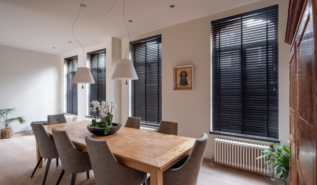 Für die Küche empfehlen wir eine Fensterdekoration, von der sich Fett- und Feuchtigkeitsspritzer leicht abwischen lassen. Sie sollte jedoch auch Einblicke verhindern. Sie wollen sich schließlich nicht von Passanten auf den Teller schauen lassen. In diesem Fall sind z. B. Shutters eine perfekte Option. Wenn Sie sich für Shutters mit einer Zwischenstrebe entscheiden, können Sie auch die Option wählen, die oberen und unteren Lamellen unabhängig voneinander zu bedienen. Dann können Sie die oberen Lamellen für den Lichteinfall offen lassen und die unteren Lamellen als Schutz gegen unerwünschte Einblicke schließen.