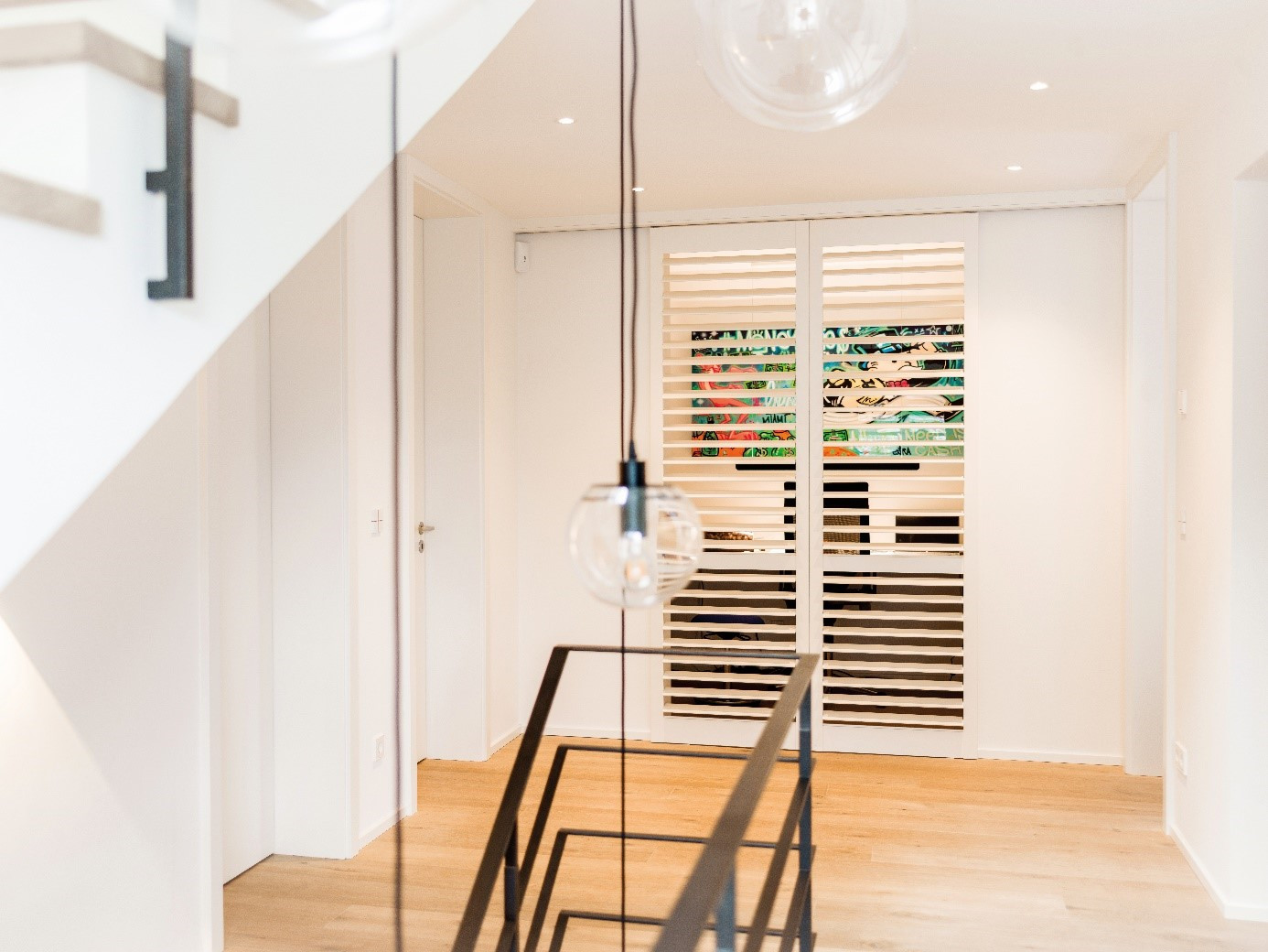 Große Fensterflächen sind eine Freude fürs Auge. Sie sorgen für viel natürlichen Lichteinfall und eine besondere Offenheit im Haus. Große Fenster bringen allerdings auch einige Herausforderungen mit sich: wie schützt man sich vor grellen Sonnenstrahlen und unerwüschten Einblicken? Für ihr neues Haus am Tegernsee in Bayern fand eine siebenköpfige Familie die ideale Lösung: Shutters von JASNO. Wir haben ihr Haus für eine Fotoreportage besucht und teilen die tollen Fotos und die Geschichte hinter dem beeindruckenden Interieur der Familie gerne.