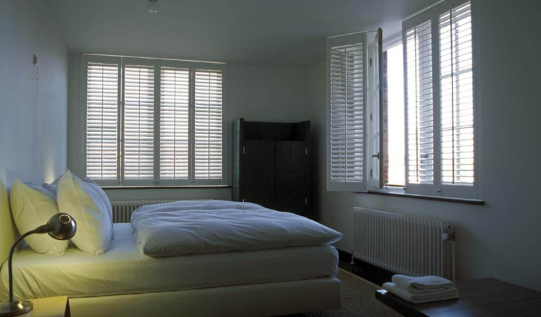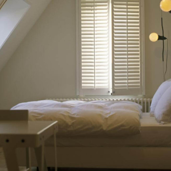 Das Lloyd Hotel war JASNOS allererstes, großes Projekt. Sämtliche Fenster sind hier mit JASNO Shutters bekleidet. Schon zehn Jahre lang. Es gibt sogar vier Meter hohe Fenster mit Shutters, einmalig! Man hat sich hier für Shutters mit Teleskopstange entschieden, passend zum Stil des Hotels, aber auch weil sich diese Shutters besser für eine intensive Verwendung eignen.